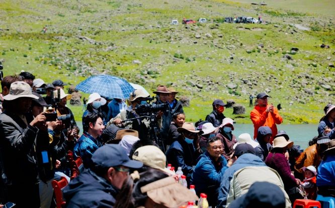 天高地闊,白云祥和,雪山巍然;清風(fēng)徐徐,青草依依,湖水湛藍(lán)。薩普雪山融水匯聚成一條清澈的河,從眼前激流直下。7月15日上午,一場(chǎng)別具特色的文化旅游賽事活動(dòng)在這里拉開(kāi)序幕。一場(chǎng)慷慨激昂、內(nèi)容豐富的主題推介演講,一首首悠揚(yáng)高亢、直擊心靈的民族歌曲,一幕幕輕盈靈動(dòng)、鏗鏘有力的特色舞姿,引得現(xiàn)場(chǎng)數(shù)百名觀眾一陣陣掌聲雷動(dòng)和直播間數(shù)十萬(wàn)用戶點(diǎn)贊、好評(píng)不斷,成功向區(qū)內(nèi)外推介了比如縣得天獨(dú)厚的旅游資源和特產(chǎn)資源,為旅游事業(yè)和經(jīng)濟(jì)社會(huì)高質(zhì)量夯實(shí)了宣傳工作基礎(chǔ)。