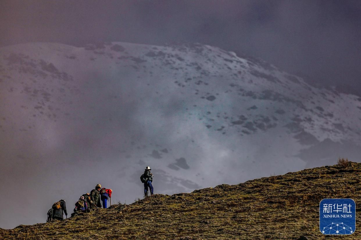清晨,西藏那曲市比如縣良曲鄉(xiāng)然木塘村蟲草采集點(diǎn)的人們統(tǒng)一前往山上采集蟲草(5月26日攝)。新華社記者 姜帆 攝
